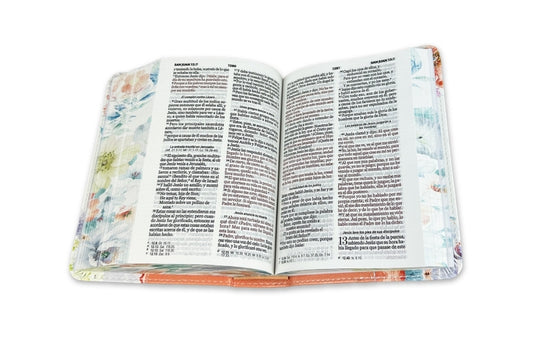 Biblia de Estudio Arco Iris para Mujer con Cierre RV1960 imit piel fucsia y blanco floral con índice