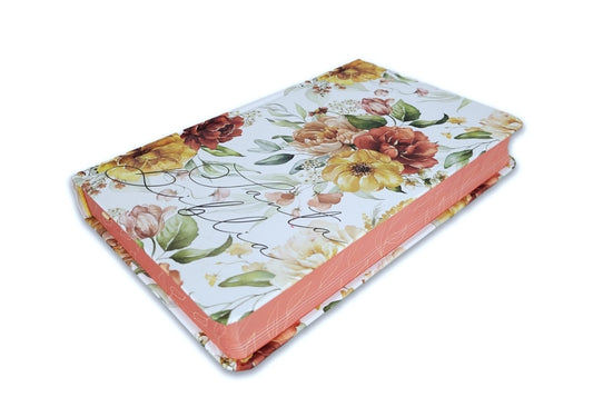 Biblia Tamaño Manual RV1960, tapa dura blanco y coral con canto floral