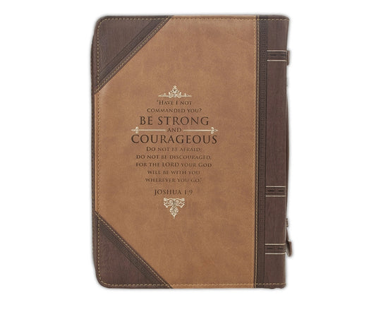 Forro de Biblia Extra Grande, Be strong and courageous, Joshua 1:9, luxleather brown