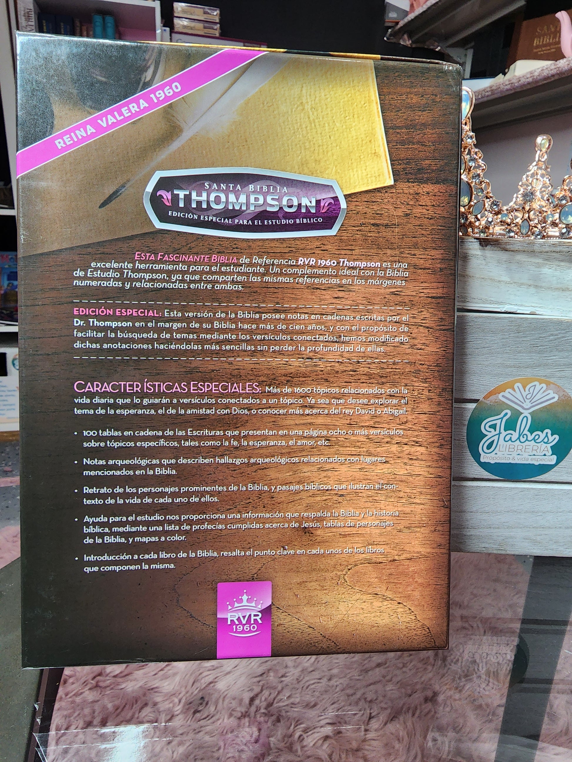 Esta fascinante Biblia de Referencia RVR 1960 Thompson es una excelente herramienta para el estudiante. Un complemento ideal con la Biblia de Estudio Thompson, ya que comparten las mismas referencias en los márgenes numeradas y relacionadas entre ambas. Esta Edición Especial posee notas en cadenas escritas por el Dr. Thompson en el márgen de su Biblia hace más de cien años, y con el propósito de facilitar la búsqueda de temas mediante los versículos conectados, hemos modificado dichas anotaciones haciéndolas más sencillas sin perder la profundidad de ellas.